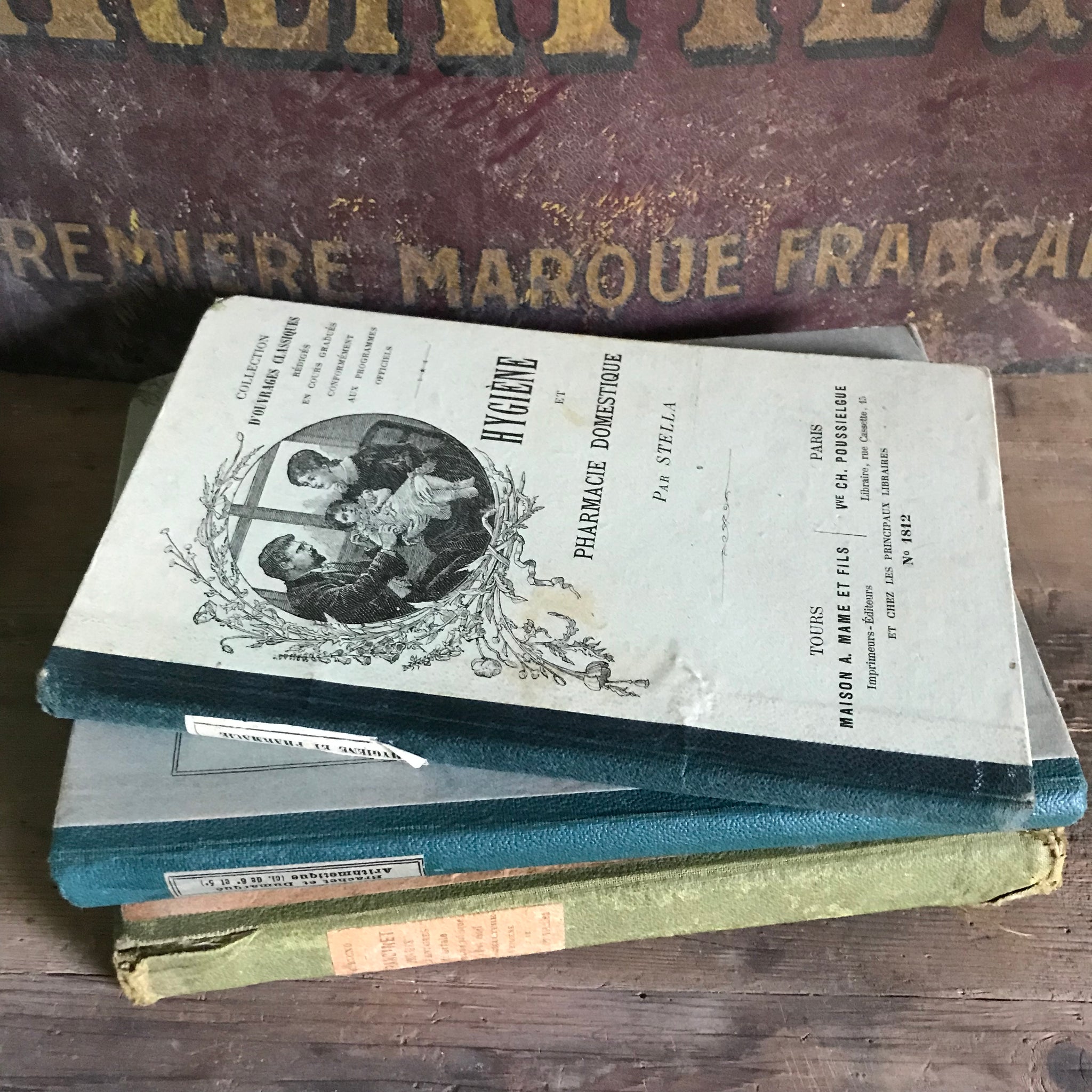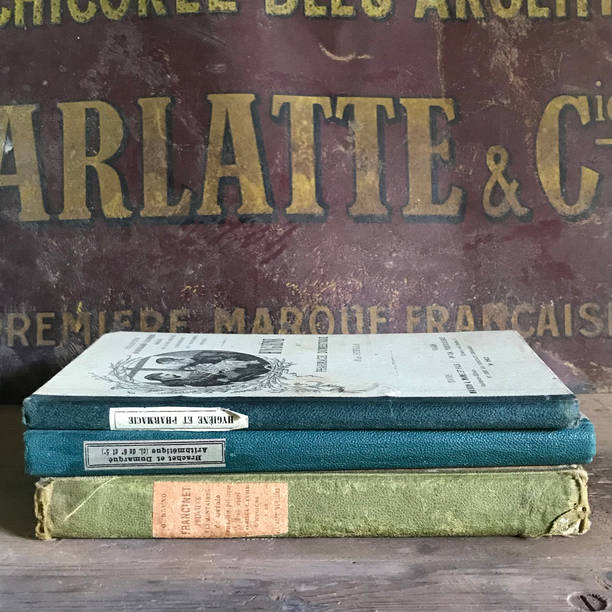 A gorgeous trio of old French books in faded tones. Aged to perfection, this trio is perfect for adding a touch of brocante style to your home.